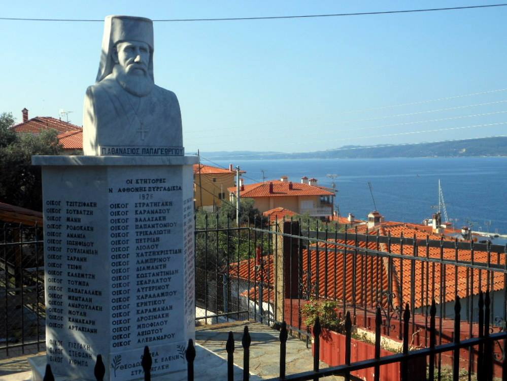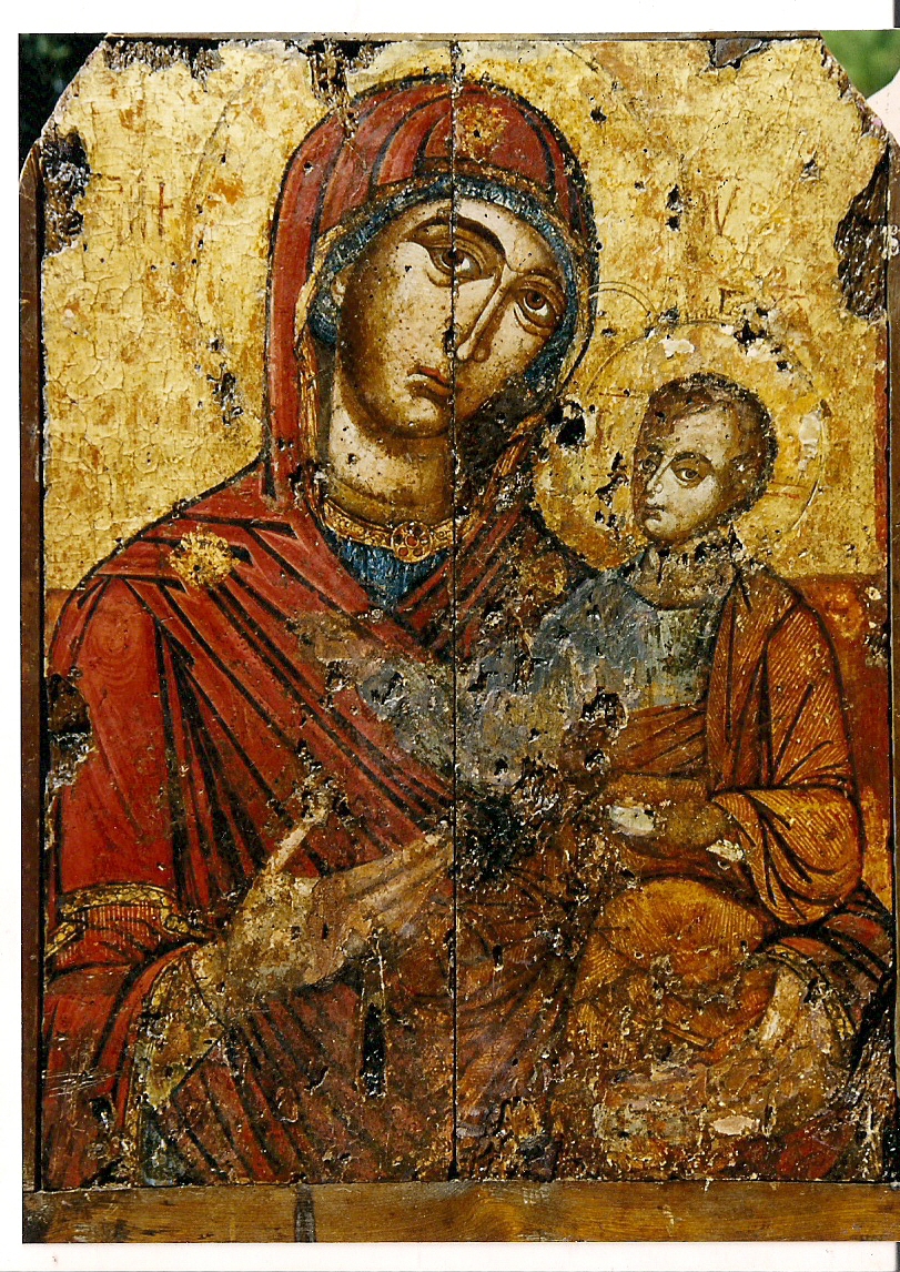 (nelle foto: la sacra immagine originale, la copia benedetta, Maria Papagheorghiou Georgudi con i suoi tre nipoti, il monumento che ricorda suo padre Athanansios Papagheorghiou)