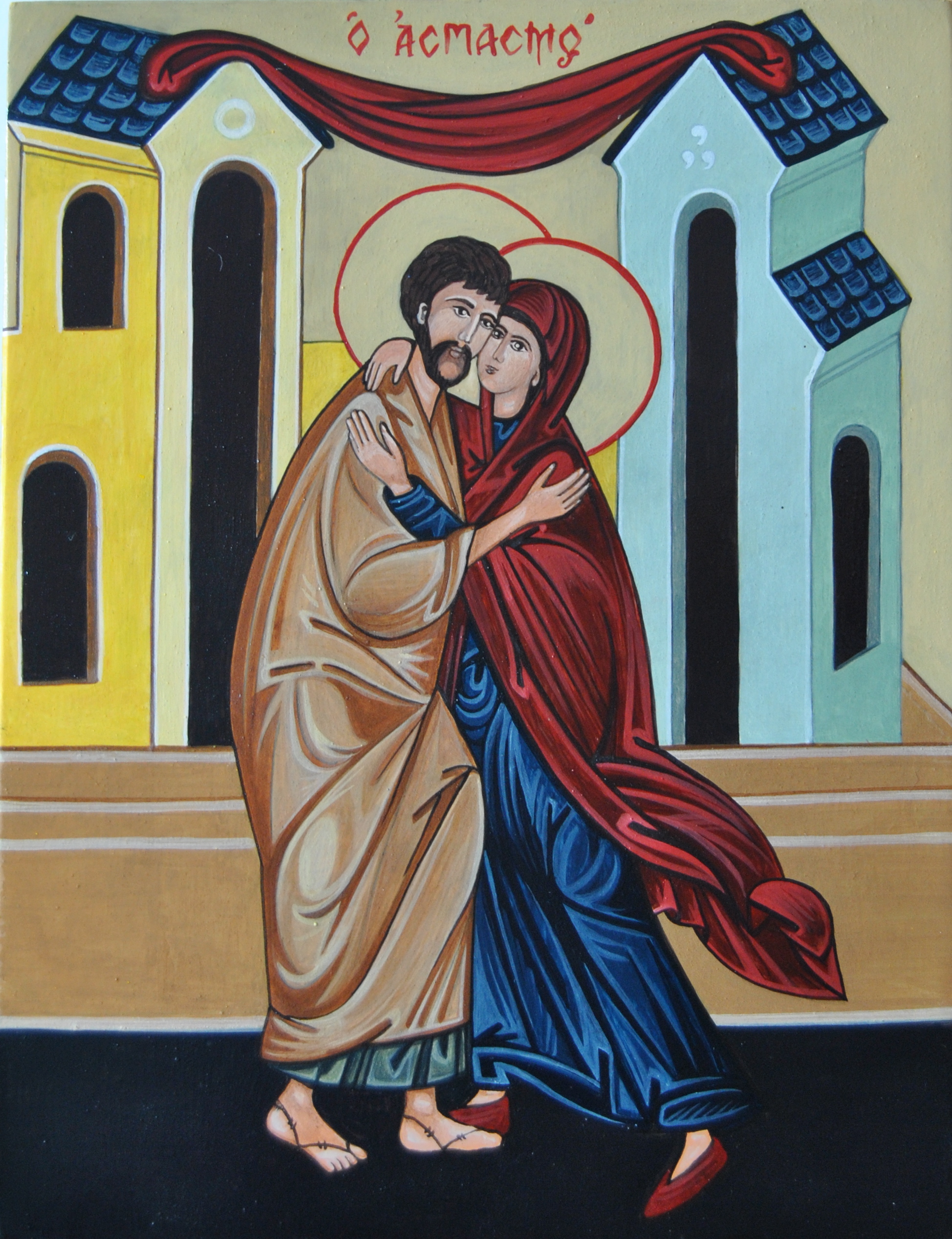 Dio “racconta” (e l’iconografo “scrive”) l’incontro di due sposi, Gioacchino e Anna, che si sono amati “veramente” e che “per amore” si sono dimenticati nell’avversità in cui il Signore li aveva posti (l’impossibilità ad avere una progenie). Si racconta di un incontro fecondo, del concepimento di Maria (prediletta), nata da Anna (grazia), madre di Dio.