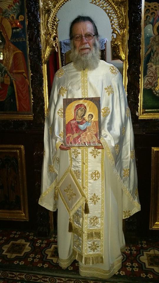 Ieri Anita e papà hanno consegnato a mamma l’icona che ho scritto per lei. Questa icona è la copia di un San Teofilo che si trova in una cappella laterale di una chiesa a Paros, dove mamma va in vacanza e dove va a pregare e cercare il silenzio.